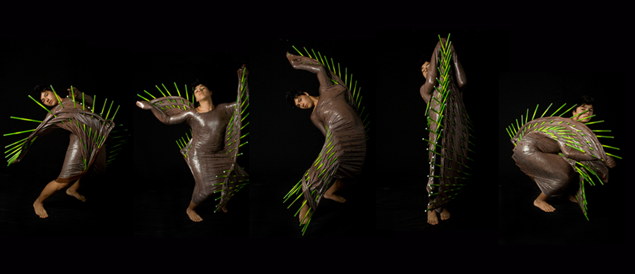 Al introducir nuestro cuerpo anatómicamente diseñado en los esquemas de movimiento de otros cuerpos, revelamos otras cualidades plásticas en el vestido, trasformando la forma dada y alterando la continuidad de la superficie, expresando su acción sobre y desde el cuerpo.